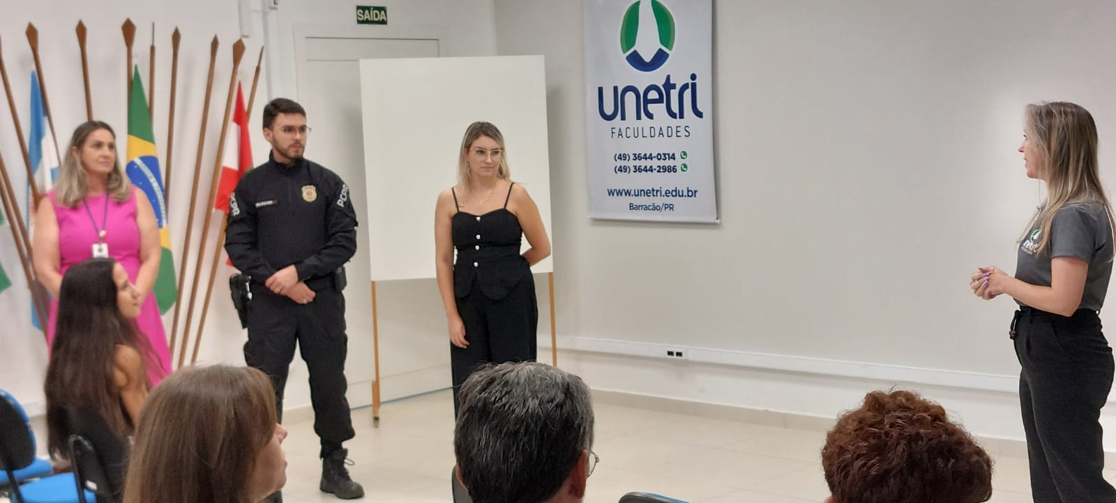 A roda conversa teve a participação do delegado de Polícia Civil de Barracão, Marcos Antônio Nogueira Pereira Júnior, que abordou sobre legislação, dados estatísticos, evolução da legislação nessa questão, e como ela está no Brasil desde a lei Maria da Penha, uma vez que agora a legislação tipifica o feminicídio como crime.