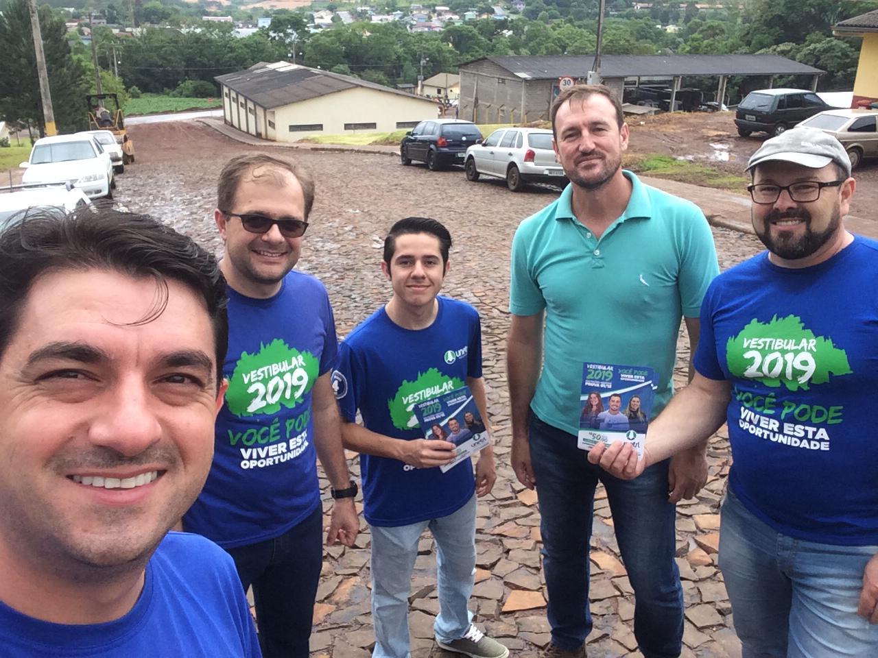 Nesta quarta-feira, 14 de novembro, uma equipe de professores e acadêmicos da instituição, acompanhada pelo secretário de Educação de Bom Jesus do Sul, Clauderi Farias, percorreu empresas do município para divulgar o vestibular 2019.